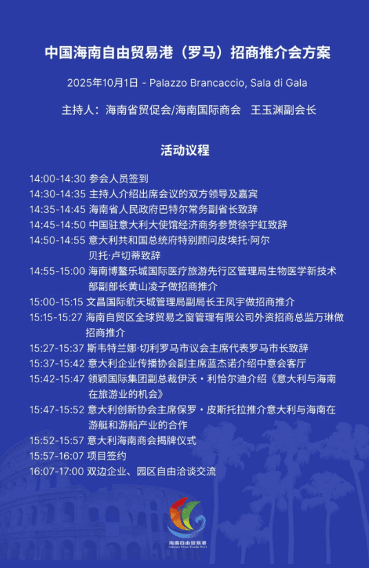 Conferenza per la Promozione della Cooperazione Economica e Commerciale Cina-Italia : Hainan Free Trade Port